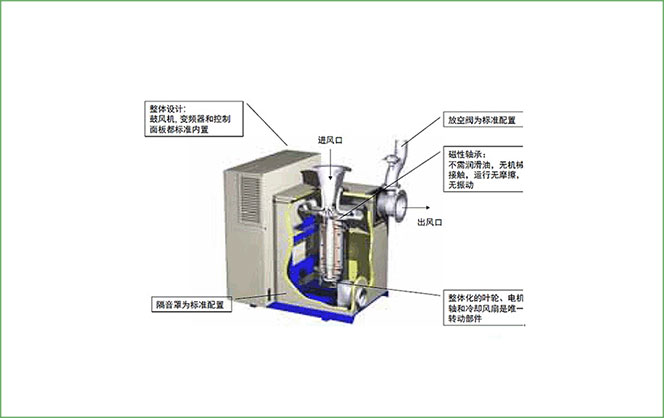 磁懸浮離心鼓風機是將磁懸浮軸承技術和高速電機技術融入傳統風機之中所形成的一種高效的節能環保的新型風機,具有機構簡單、高效智